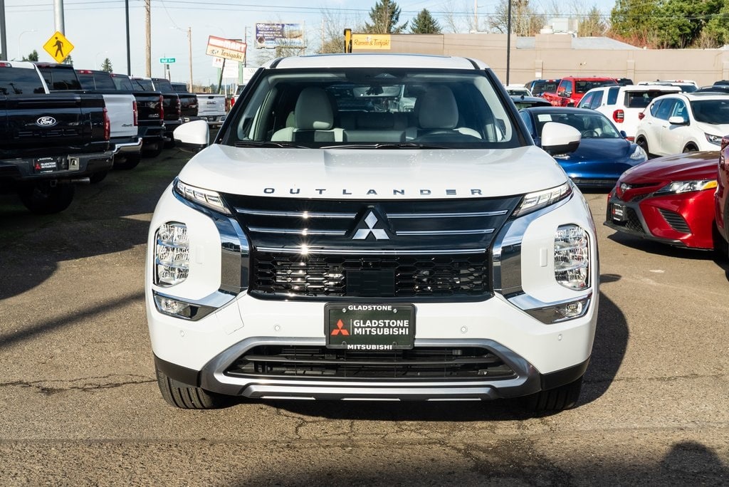 AWD, 3rd Row Seating, 4-Wheel Disc Brakes, 8 Speakers, ABS brakes, Air Conditioning, Alloy wheels, AM/FM radio: SiriusXM, Android Auto & Apple CarPlay, Auto High-beam Headlights, Auto-dimming Rear-View mirror, Automatic temperature control, Brake assist, Bumpers: body-color, Compass, Delay-off headlights, Driver door bin, Driver vanity mirror, Dual front impact airbags, Dual front side impact airbags, Electronic Stability Control, Emergency communication system: Mitsubishi Connect w/ 24-month trial, Exterior Parking Camera Rear, Four wheel independent suspension, Front anti-roll bar, Front Bucket Seats, Front Center Armrest w/Storage, Front dual zone A/C, Front fog lights, Front reading lights, Fully automatic headlights, Headlight cleaning, Heated door mirrors, Heated Front Bucket Seats, Heated front seats, Illuminated entry, Knee airbag, Leather Shift Knob, Leather steering wheel, Low tire pressure warning, Navigation System, Occupant sensing airbag, Outside temperature display, Overhead airbag, Overhead console, Panic alarm, Passenger door bin, Passenger vanity mirror, Power door mirrors, Power driver seat, Power Liftgate, Power steering, Power windows, Radio data system, Radio: AM/FM 12.3" Navigation with Smartphone-Link, Rain sensing wipers, Rear anti-roll bar, Rear seat center armrest, Rear side impact airbag, Rear window defroster, Rear window wiper, Reclining 3rd row seat, Remote keyless entry, Security system, Speed control, Speed-Sensitive Wipers, Split folding rear seat, Spoiler, Steering wheel mounted audio controls, Synthetic Leather Seating Surfaces, Tachometer, Telescoping steering wheel, Tilt steering wheel, Traction control, Trip computer, Turn signal indicator mirrors, and Variably intermittent wipers.